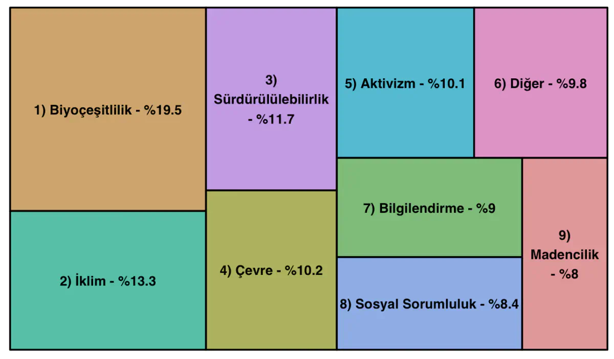Bu araştırma, Türkiye’deki çevreci STK’ların iklim iletişiminde çok boyutlu bir yaklaşım sergilediğini ortaya koyuyor. Biyoçeşitliliğin en yüksek orana sahip olması, STK’ların geniş bir ekolojik perspektifle hareket ettiğini gösteriyor.
